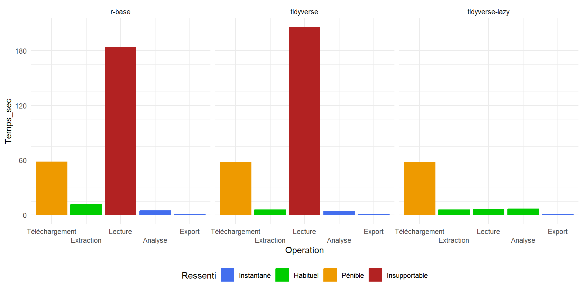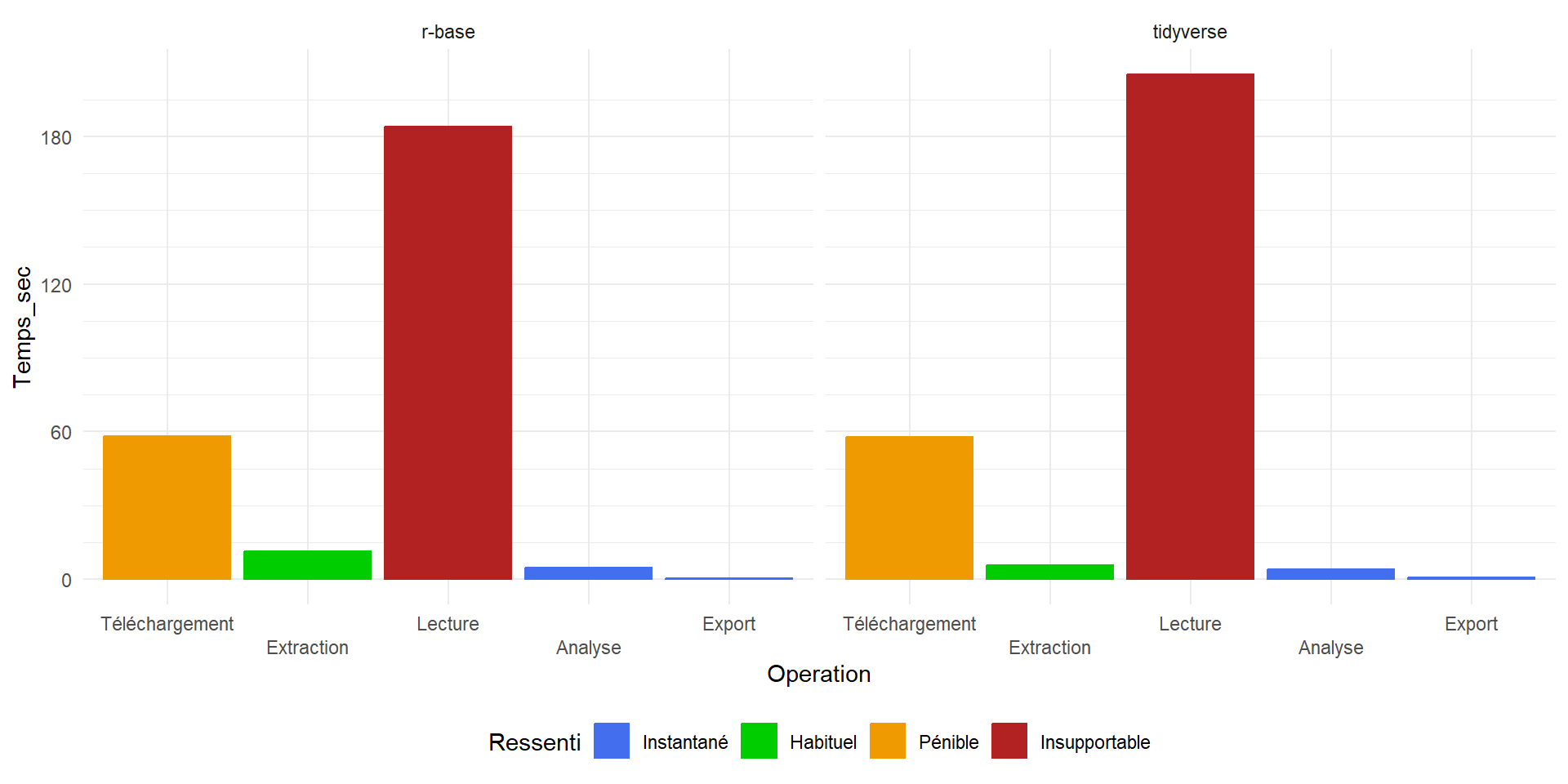 tidyverse (et ses amis) à la rescousse !tidyverse (et ses amis) à la rescousse !curl : pas de timeout et plus robuste en cas de coupure pour les gros fichiers :download.file()curl::curl_download()tidyverse (et ses amis) à la rescousse !archive : gère plus de formats, plus rapide, des paramètres plus completsunz()archive::archive_extract()tidyverse (et ses amis) à la rescousse !readr : plus rapide*, plus versatile, génère un tibbleread.csv2()readr::read_csv2()tidyverse (et ses amis) à la rescousse !base par de la syntaxe dplyr et tidyr : c’est quand même plus explicite1aggregate(), reshape(), merge()group_by(), summarise(), pivot_wider() et left_join()tidyverse (et ses amis) à la rescousse !readr : on peut enfin ne plus préciser qu’on ne veut pas exporter les numéros de ligne…write.csv()readr::write_csv()tidyverse (et ses amis) à la rescousse !curl::curl_download()archive::archive_extract()readr::read_csv2()group_by(), summarise(), pivot_wider() et left_join()readr::write_csv()Statistiques - Téléchargement