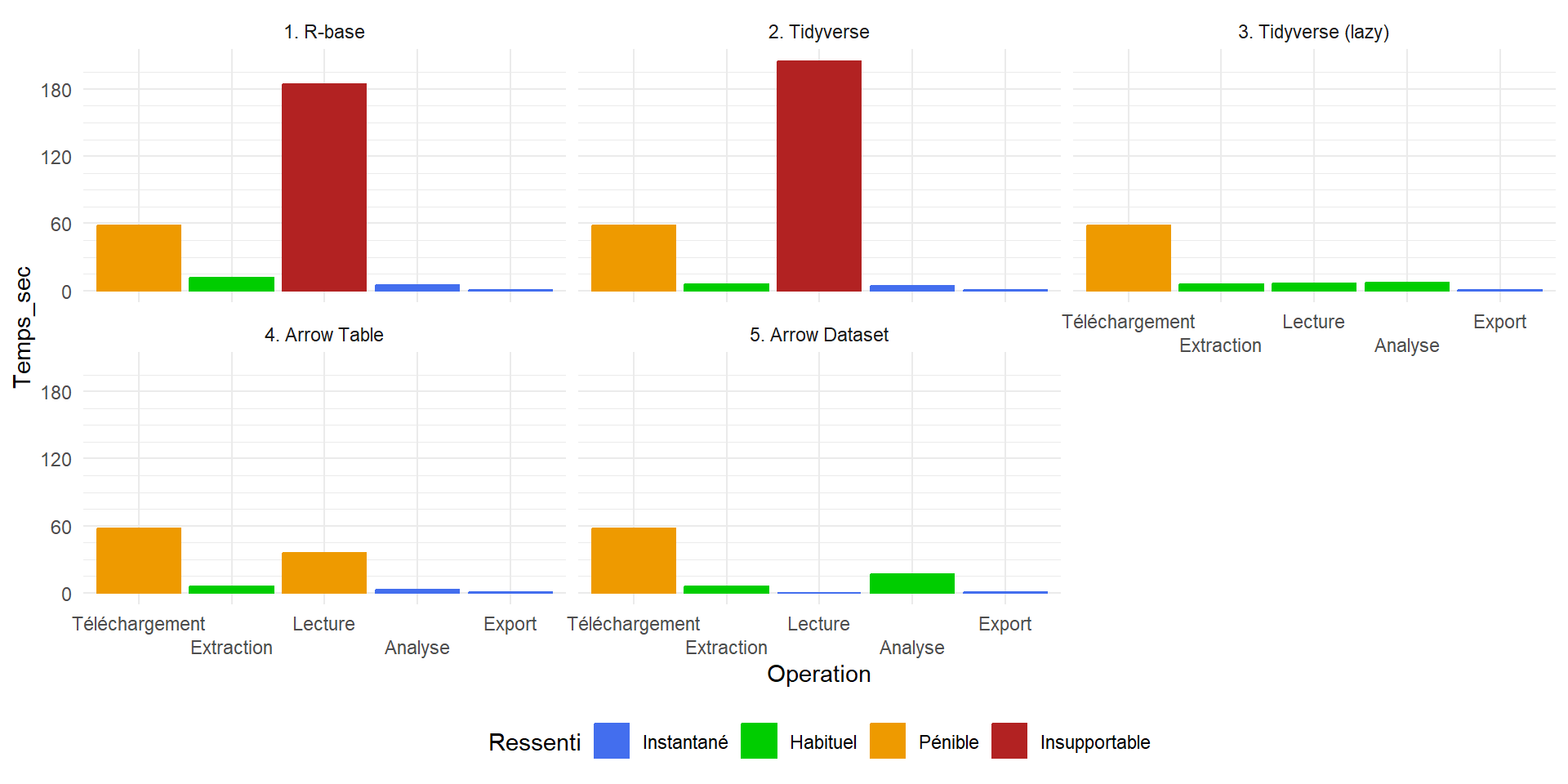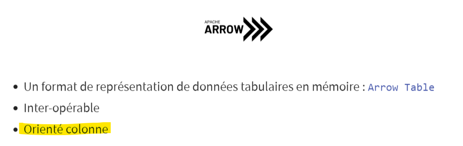 Arrow vous permet de lire très rapidement des jeux de données massifs et d’y appliquer des opérations d’agrégation simples.
