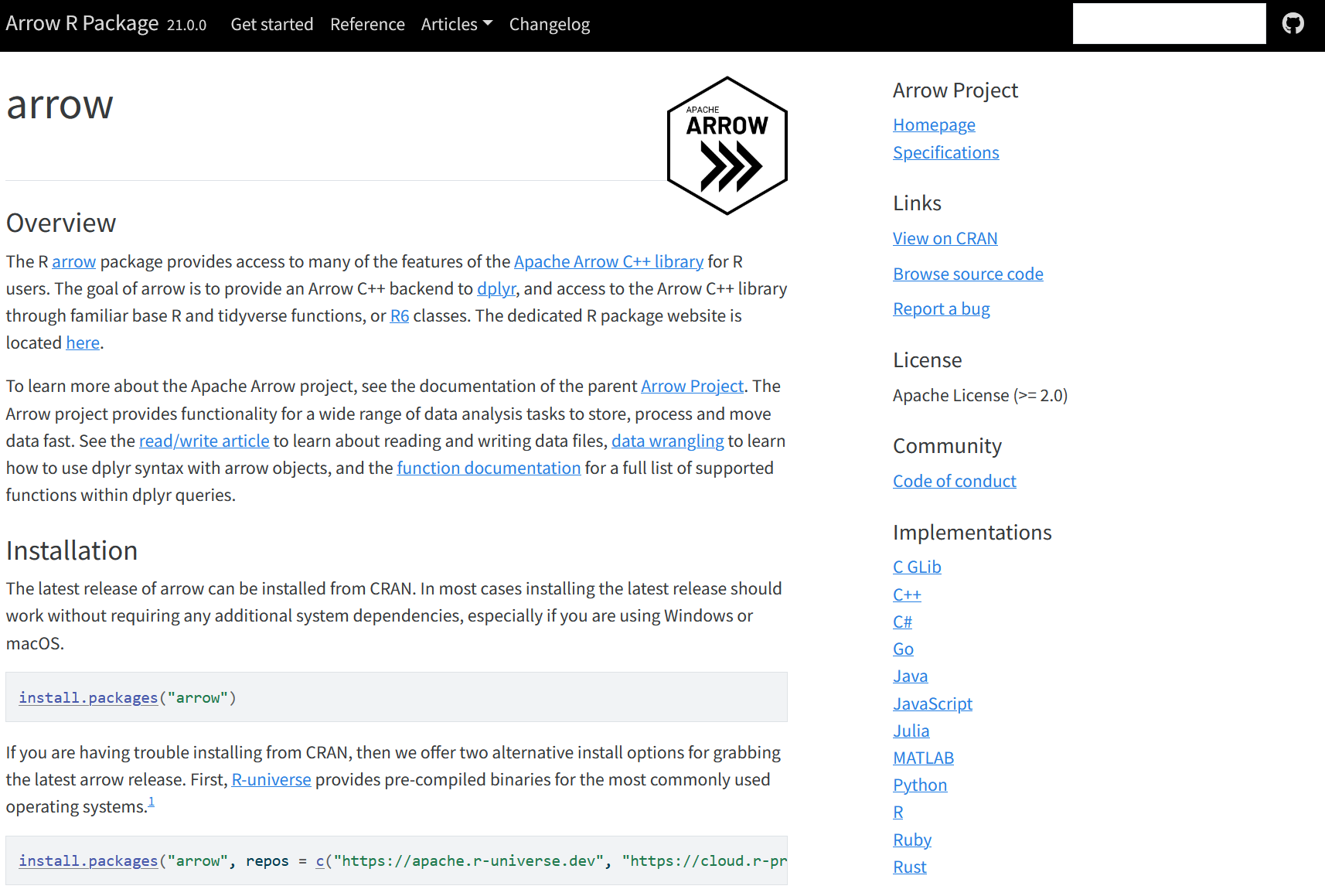Apache Arrow is a language-agnostic software framework for developing data analytics applications that process columnar data. It contains a standardized column-oriented memory format that is able to represent flat and hierarchical data for efficient analytic operations on modern CPU and GPU hardware. Wikipedia, 2025
